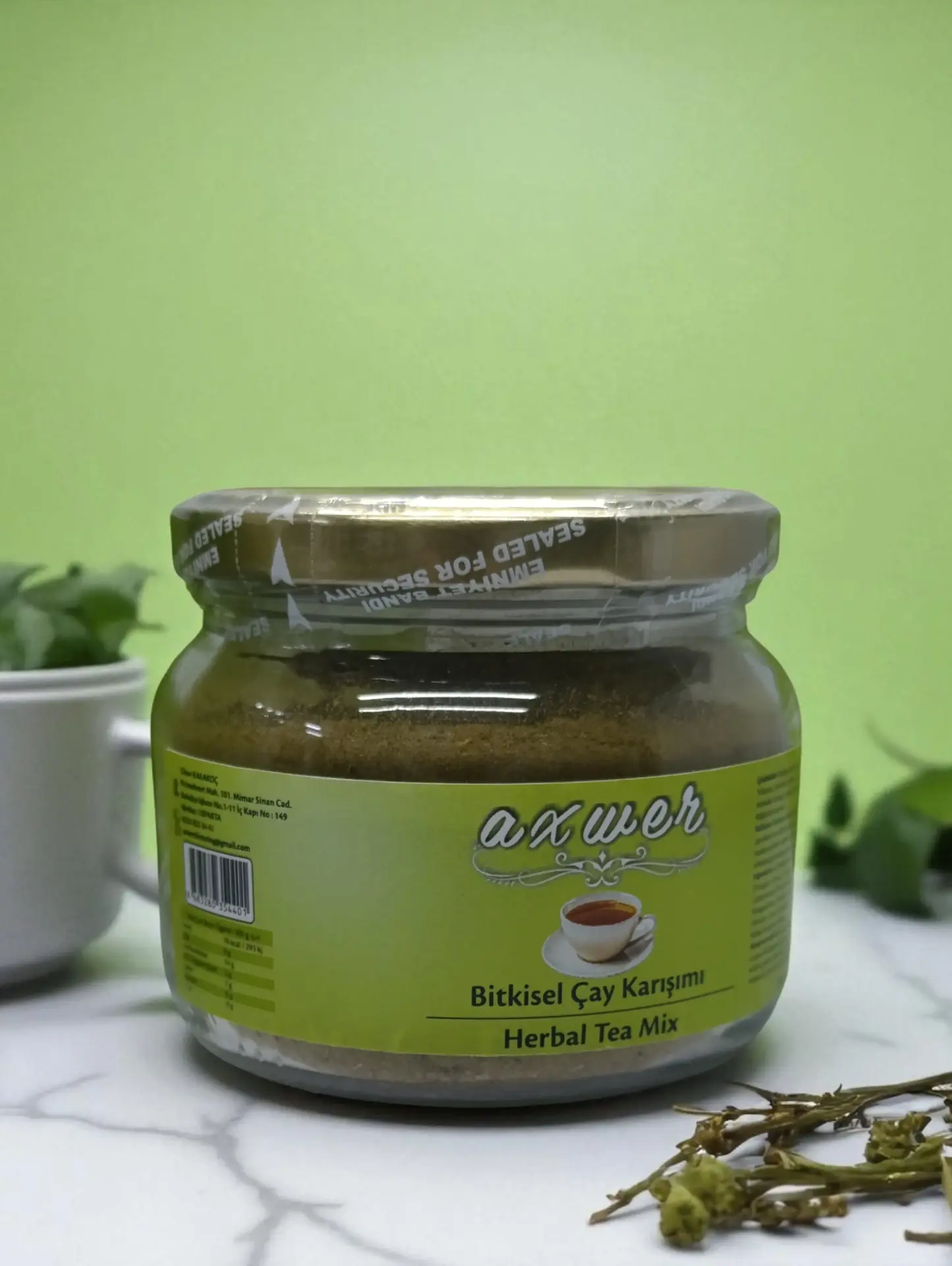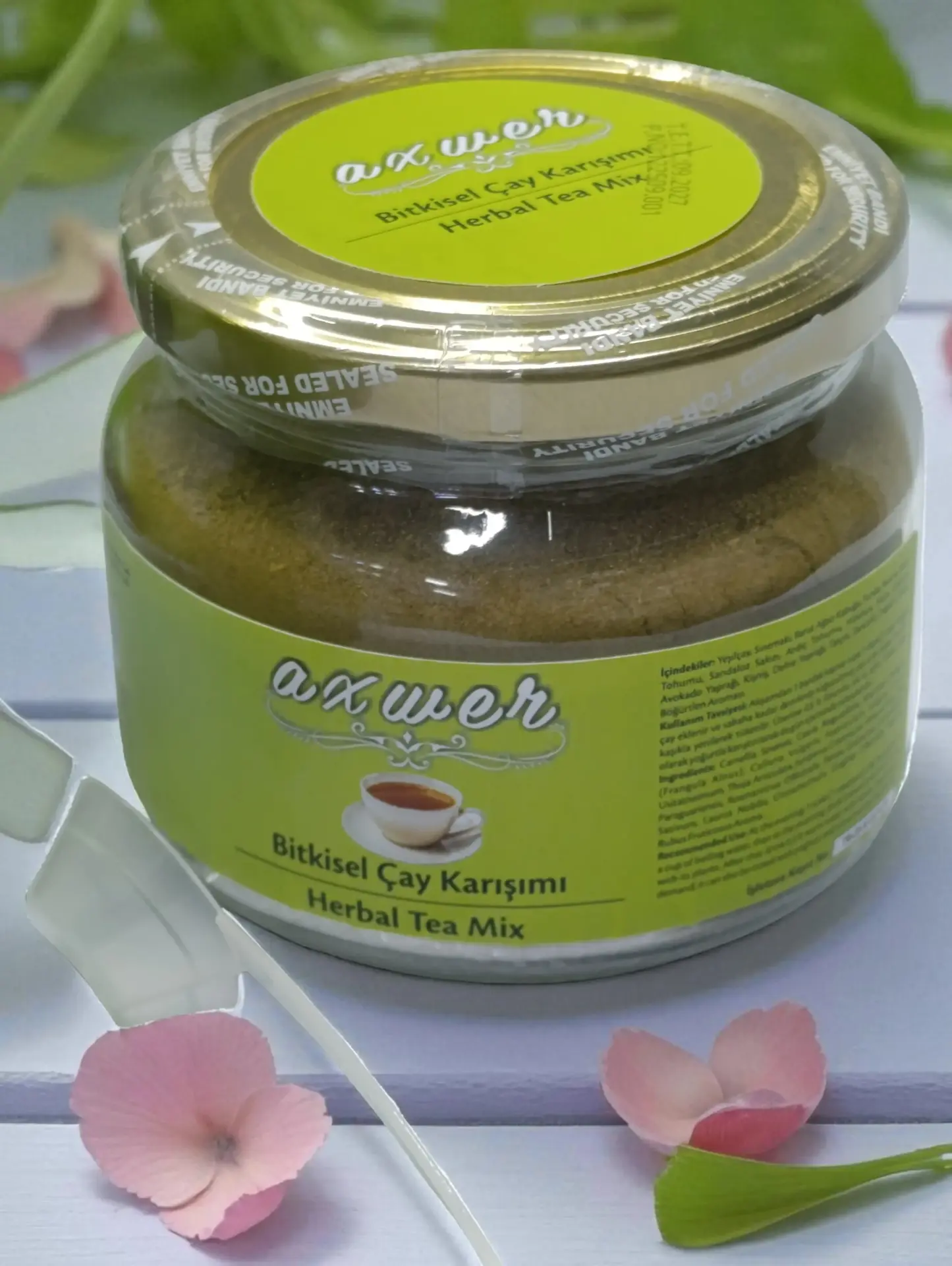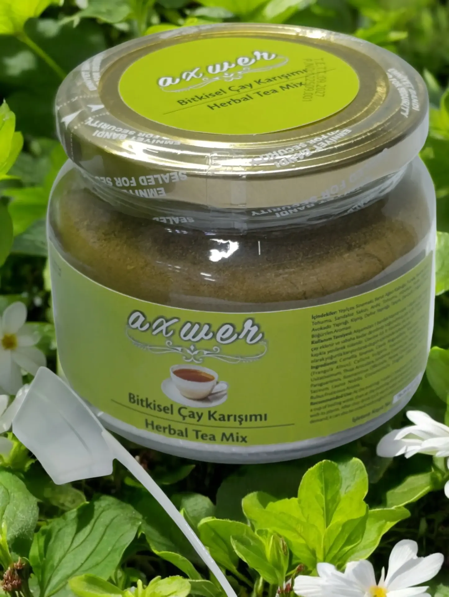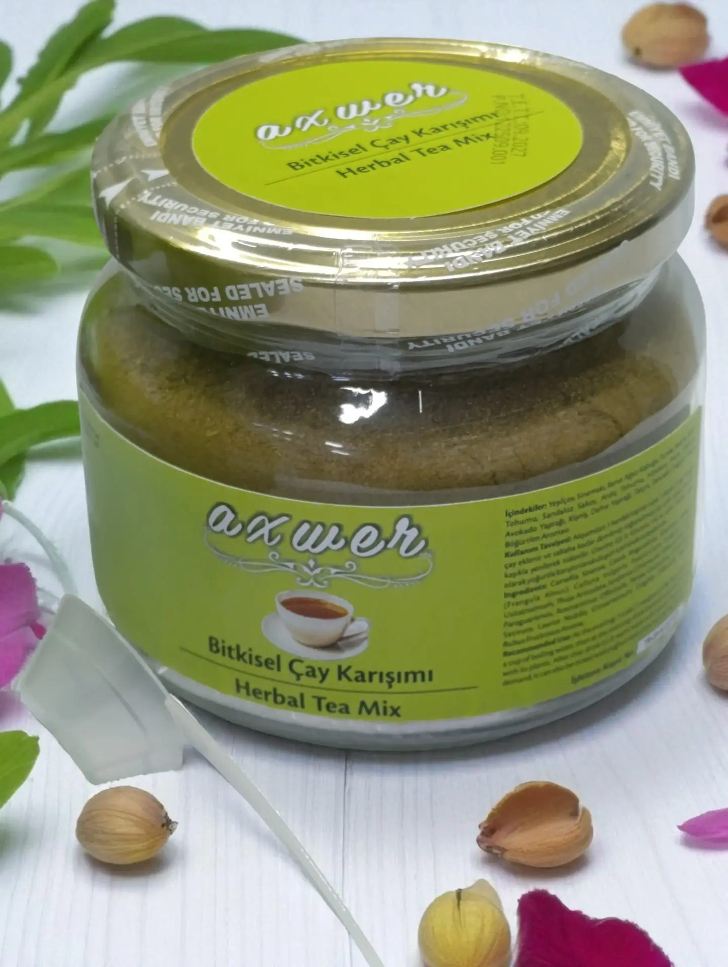 Axwer böğürtlenli bitki çayı 18 adet doğal şifalı bitkinin öğütülmüş ve toz halidir.