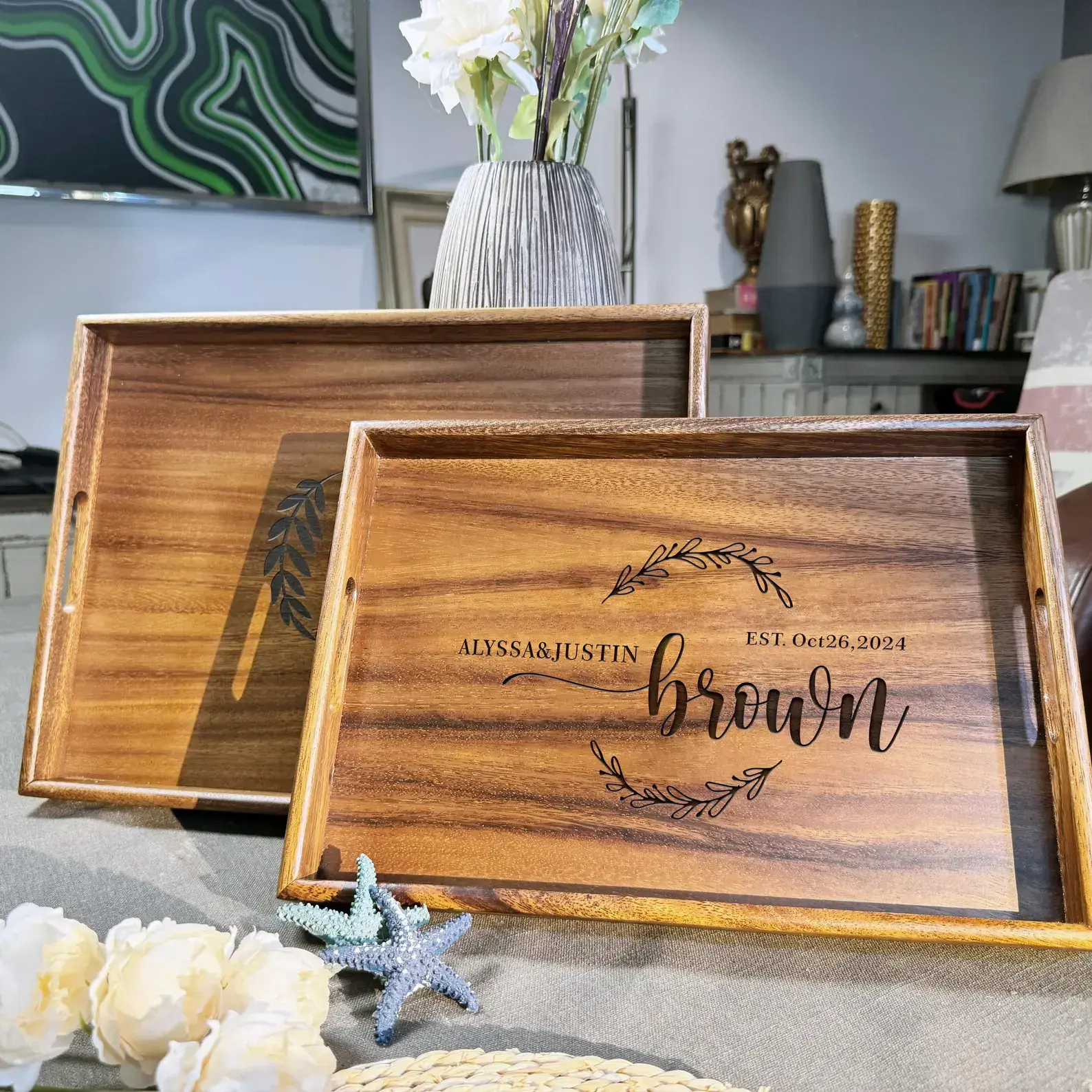 Kişiye Özel Ahşap Tepsi – İsim ve Tarih Yazılı, Lazer Gravürlü